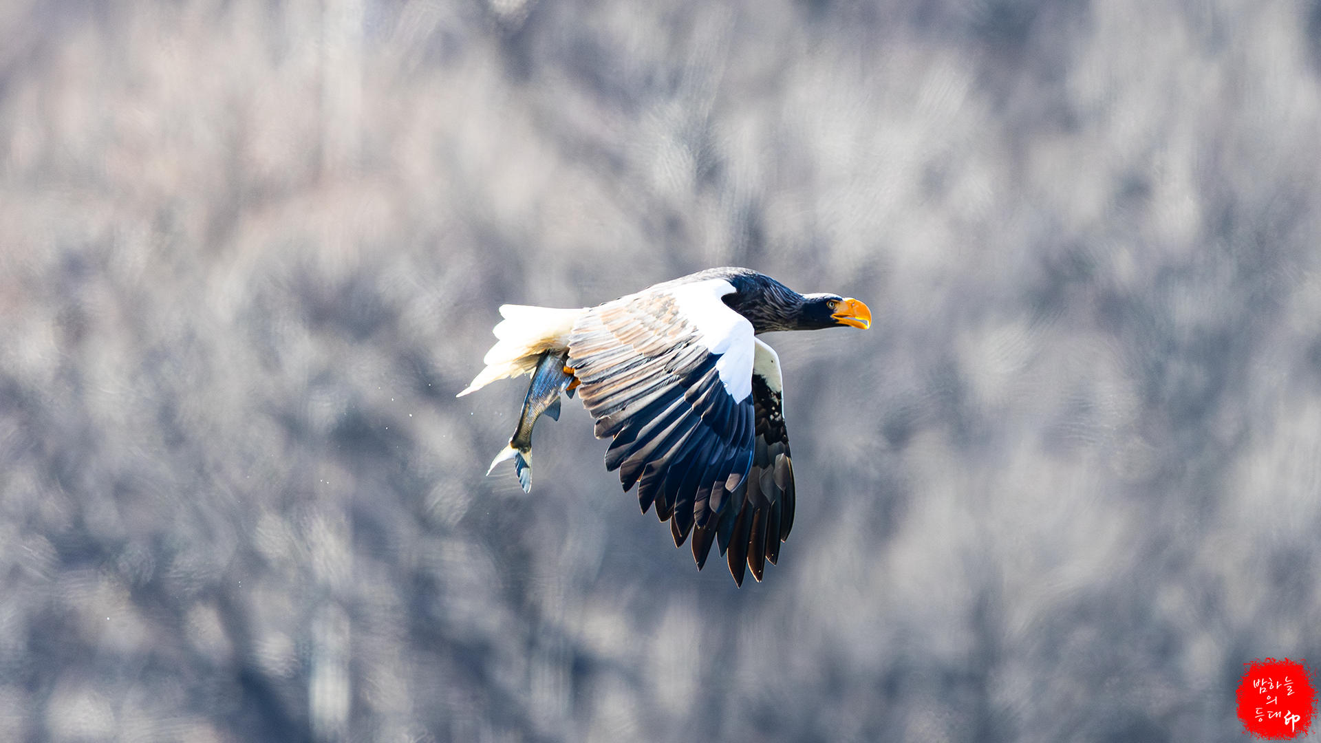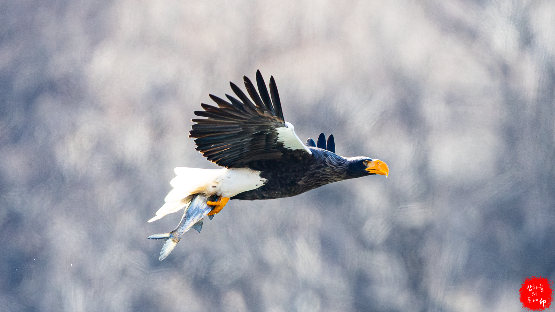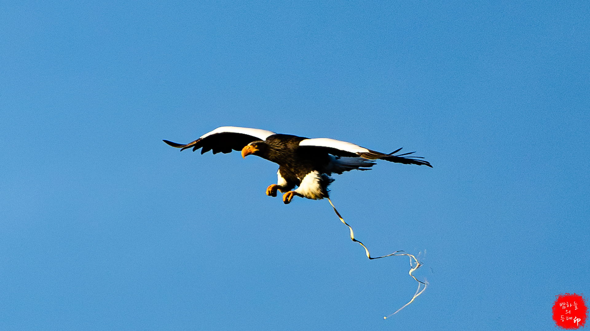 이번에는 흰꼬리수리가 먹이를 뺏기위해 쫓아간다.