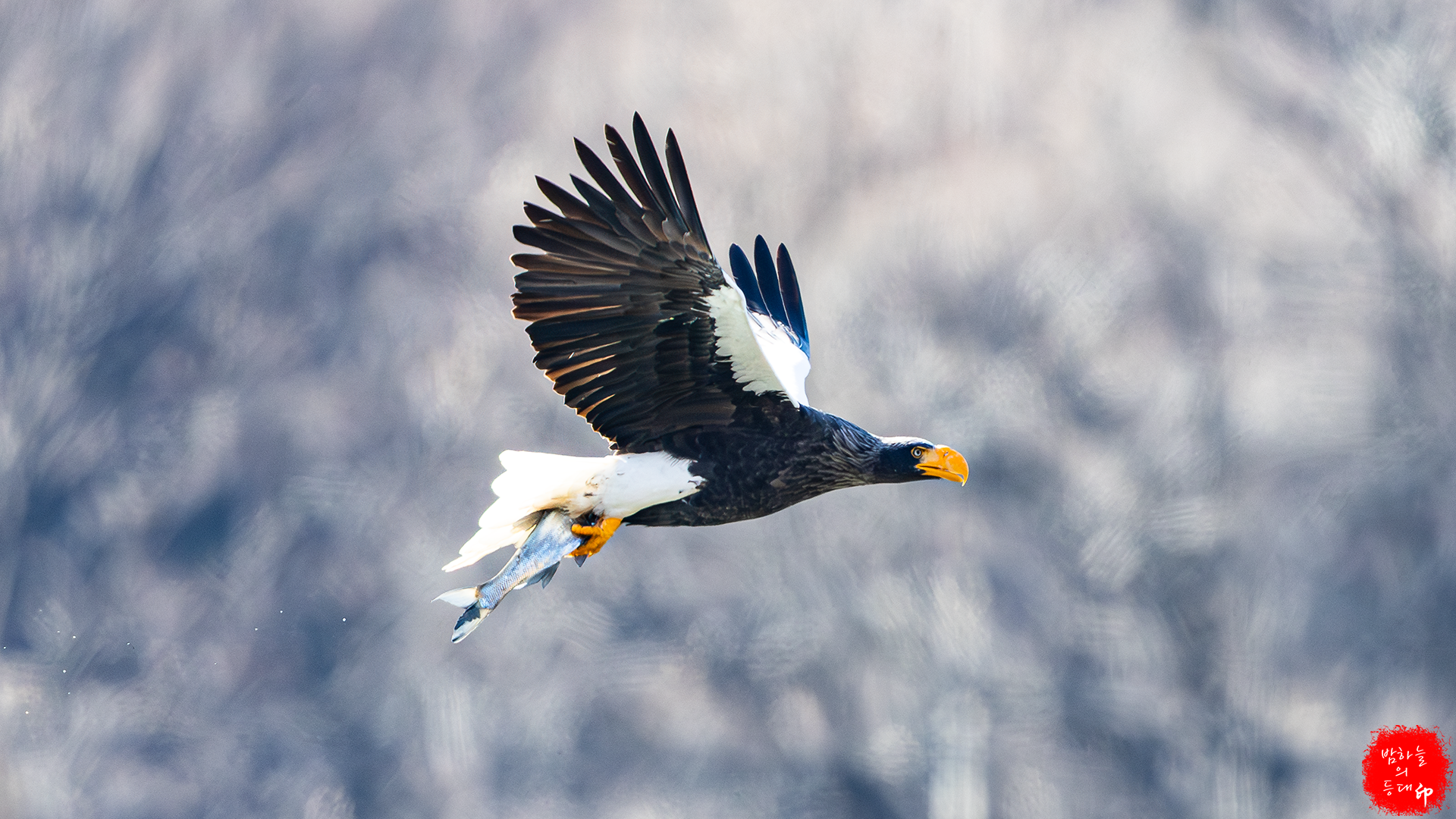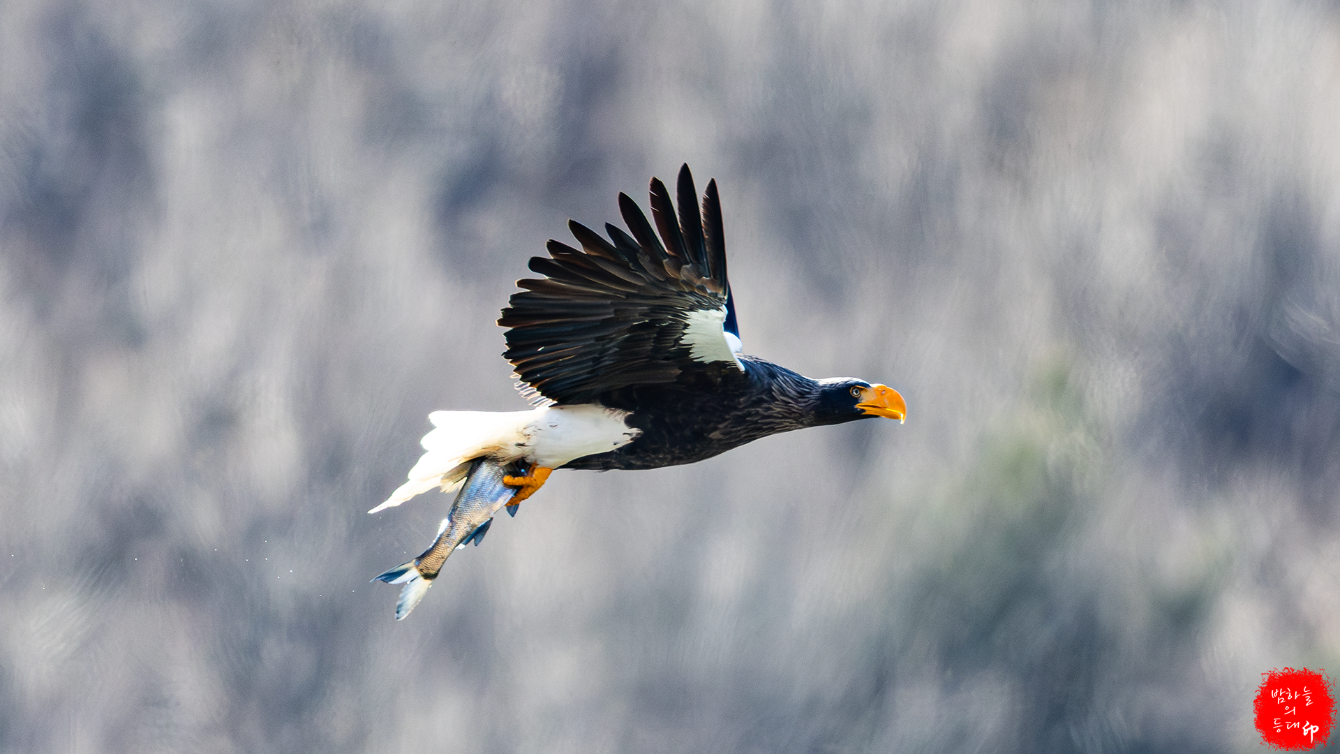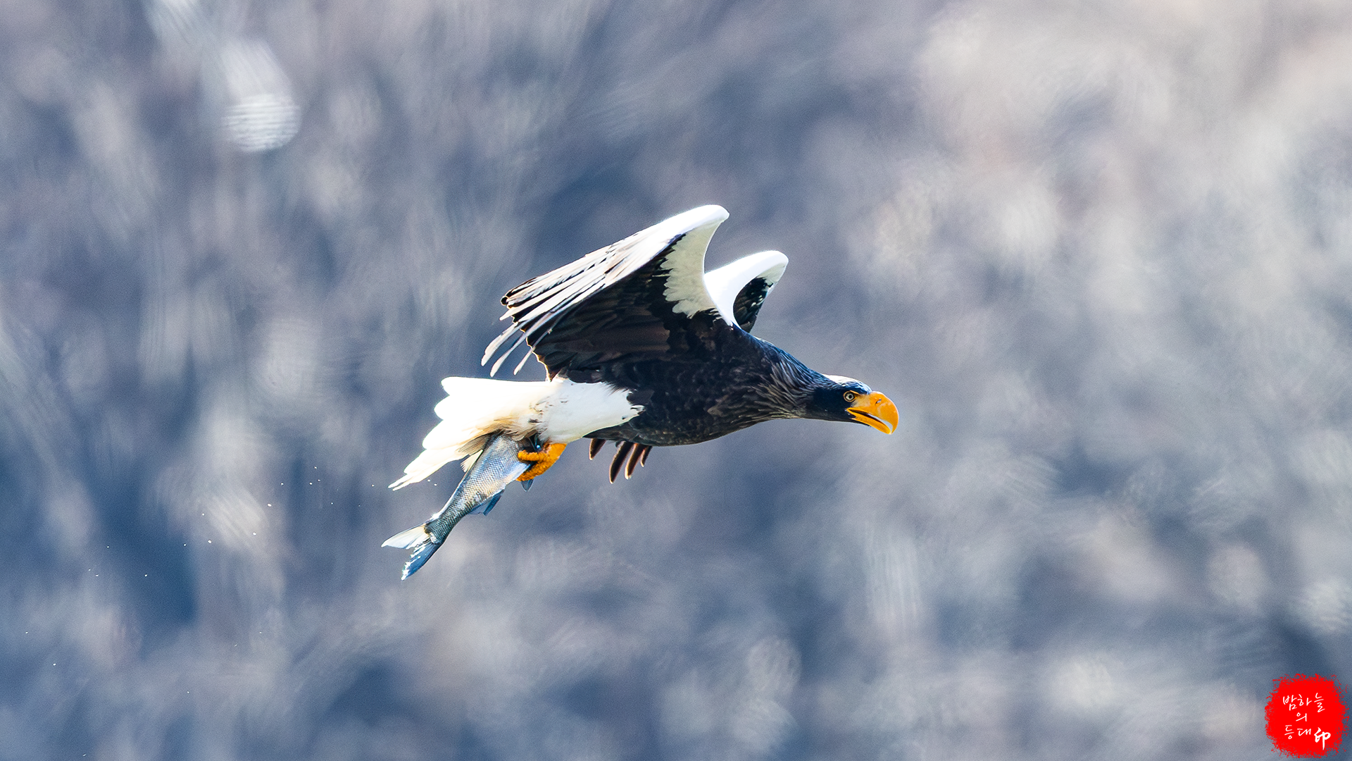 이번에는 흰꼬리수리가 먹이를 뺏기위해 쫓아간다.