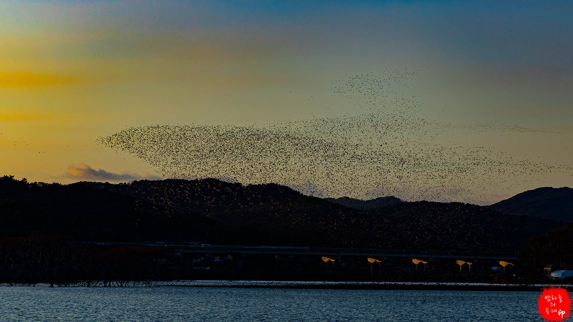 저수지위에 가득한 가창오리를 보고, 일몰을 배경으로 하는 동선을 체크하는 사이에